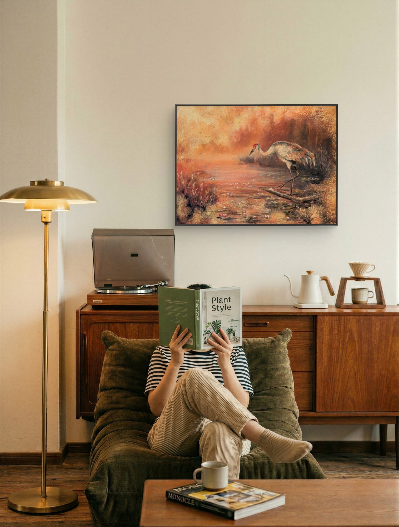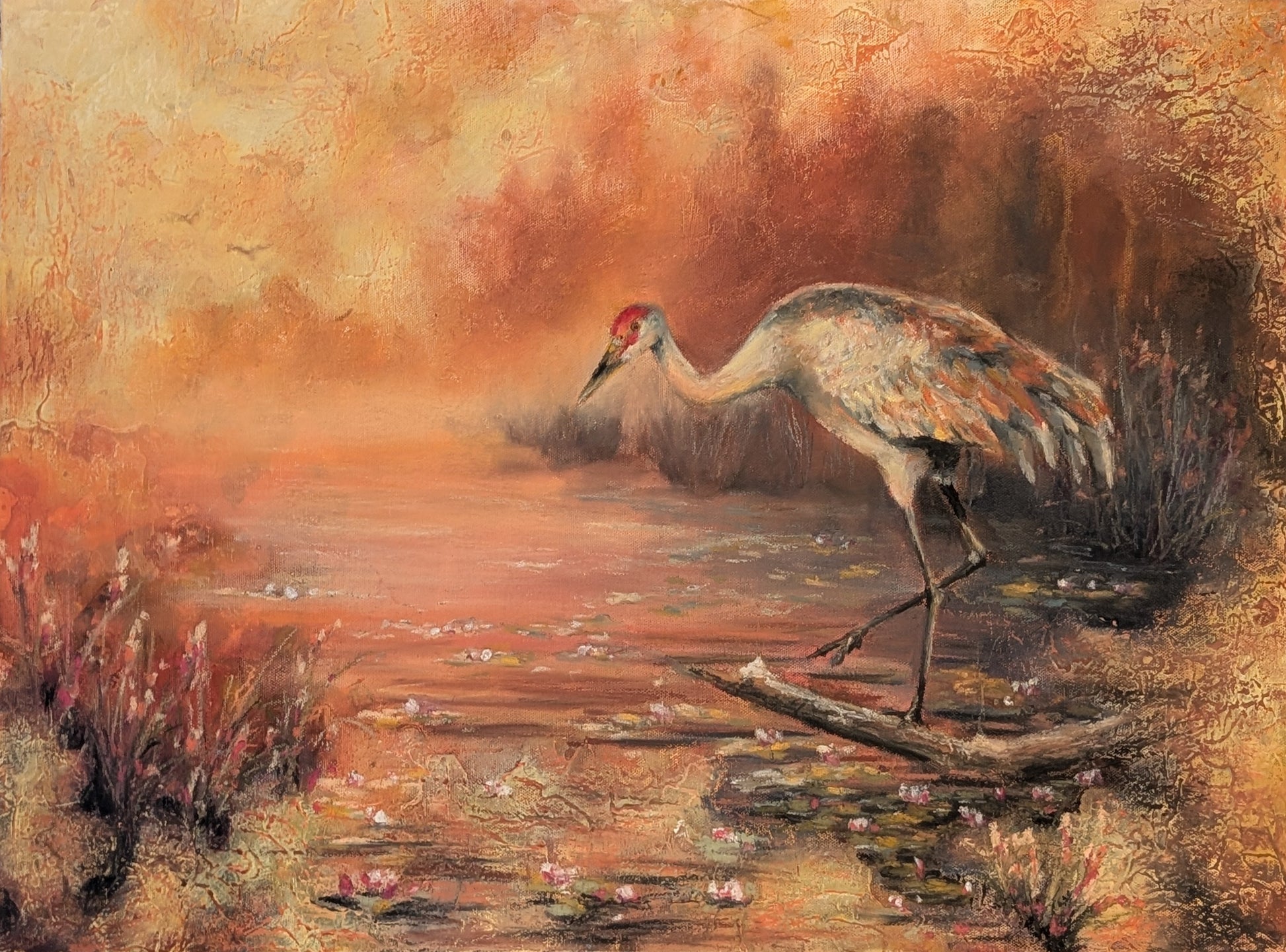 The summer evening sun is setting on a cool pond as a sandhill crane is poised to make her last catch of the day. It is never too late to seize opportunities, you are never too old to learn new things. As the sun sets on this day, a new day will begin tomorrow. Seize your moment like a skilled bird catches its fish, don't hesitate, take a step of faith.