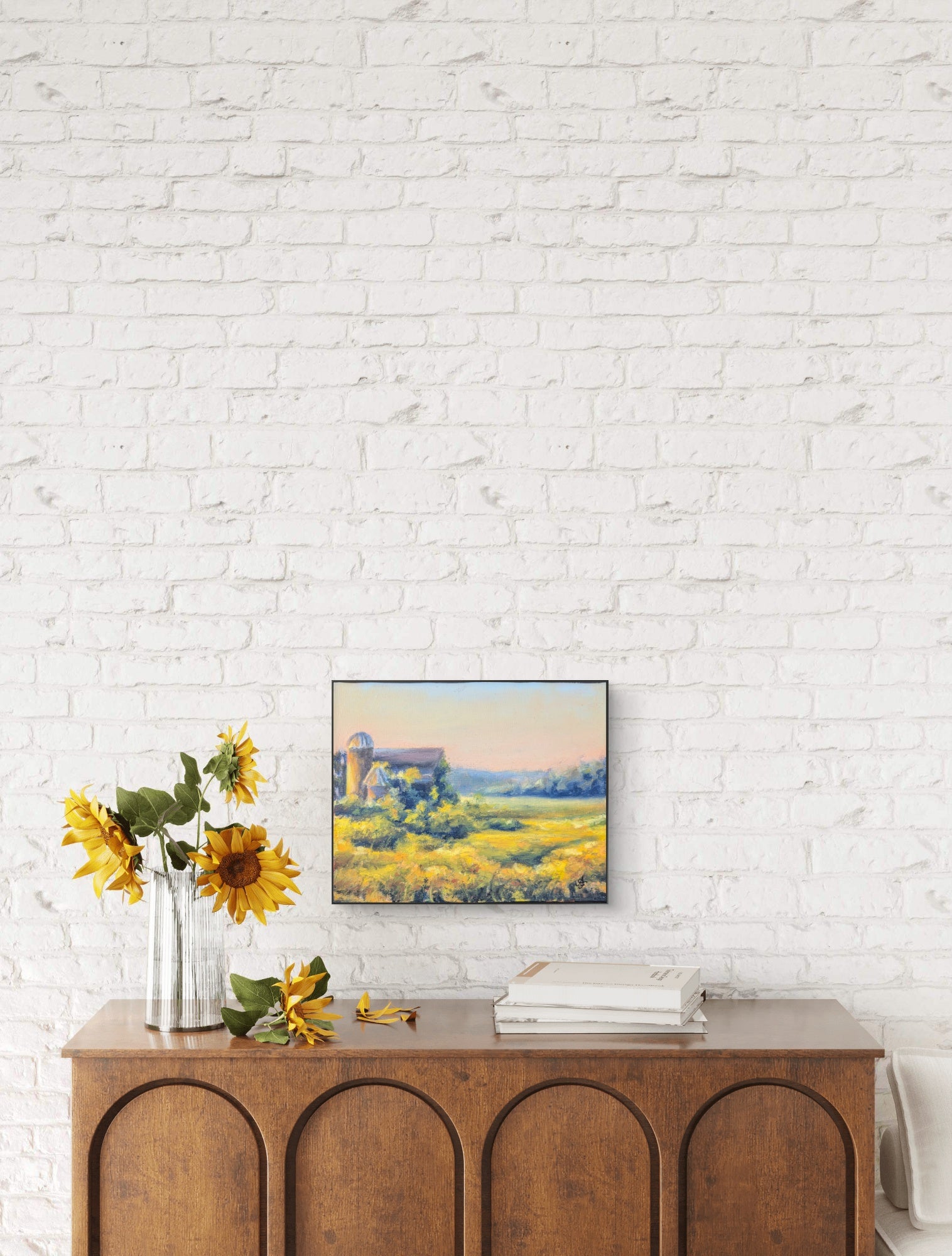 This fall I went driving around with my easel at sunset to catch a quick sunset painting when I found this barn overlooking a golden field. It was perfect! I sketched in the colors while it was still light then finished it at home.