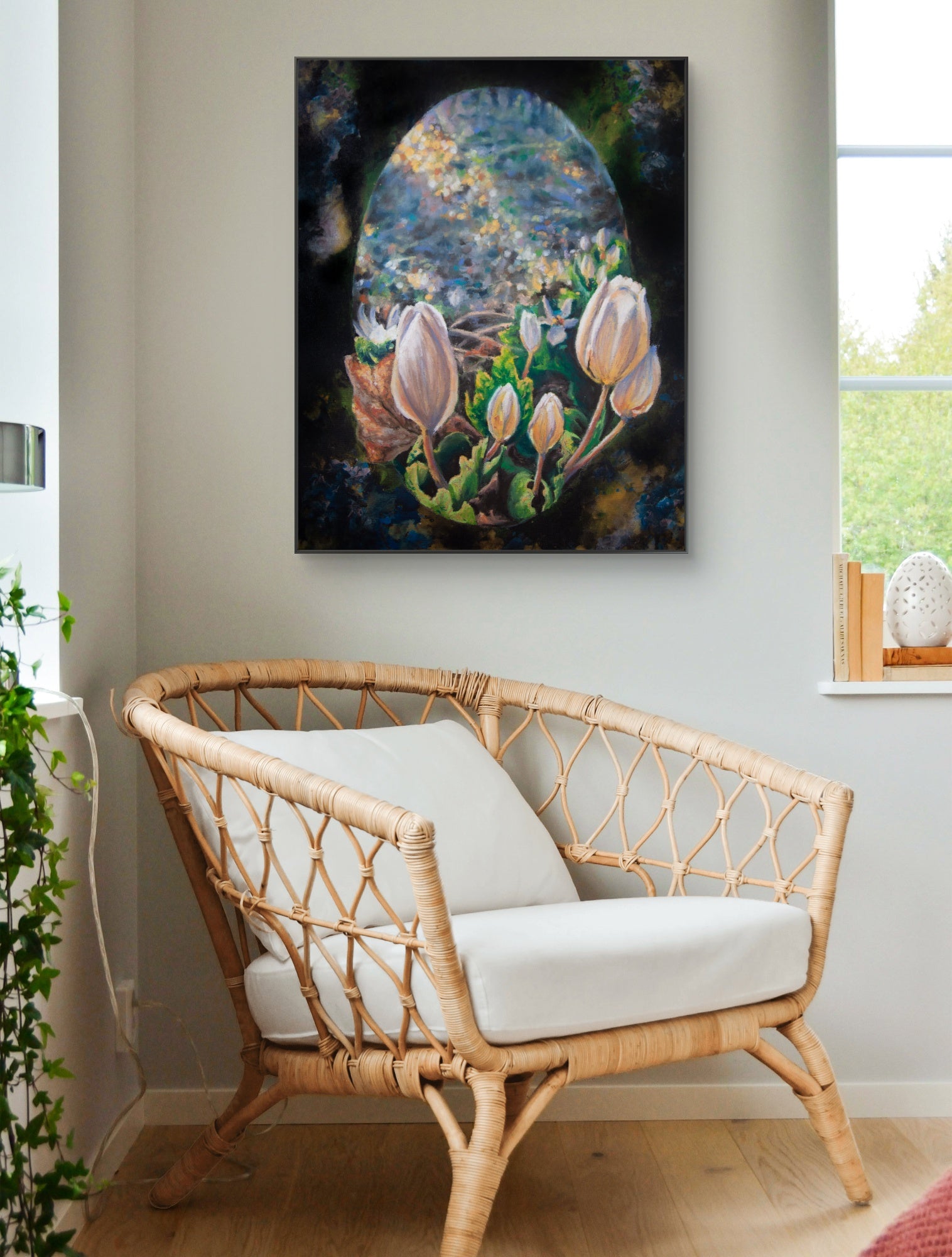 This artwork is my original creation made with oil pastel on a 16x20 canvas, sealed with a special sealant that prevents smudging, ensuring safe handling. This piece is equipped with wire ready for hanging. It can be framed or hung as is.