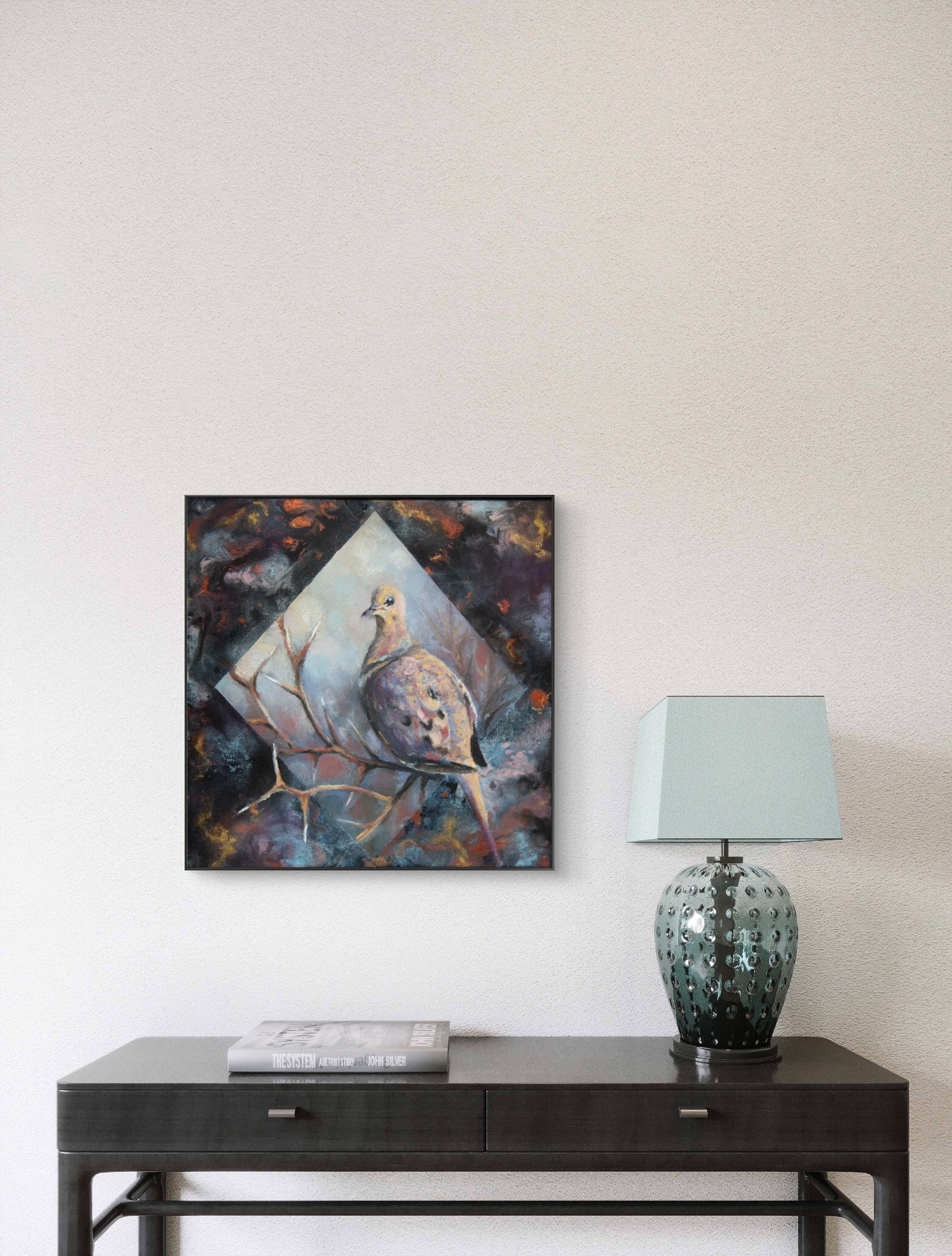 This artwork is my original creation made with oil pastel on a 12x12 canvas, sealed with a special sealant that prevents smudging, ensuring safe handling. This piece is equipped with wire ready for hanging. It can be framed or hung as is.