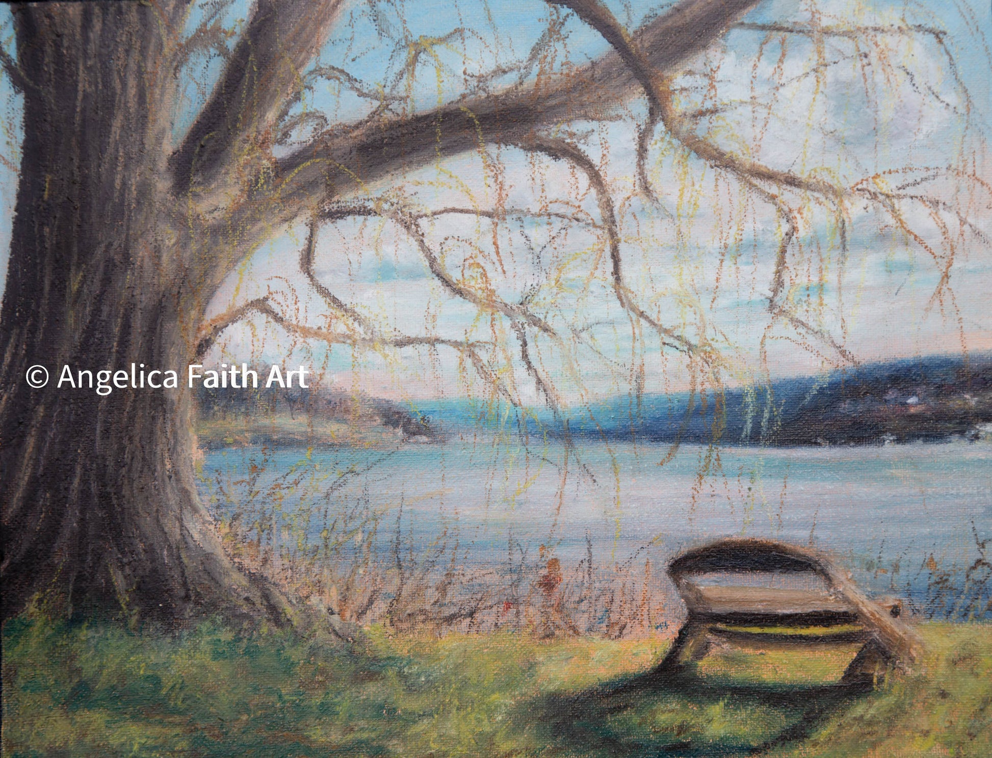 This is the last plein air piece I completed during a week challenge. It was a lovely spring day at Seneca Lake State Park. Weeping willows happen to be one of my favorite trees, the perfect place to take a break, listen to the wind through the trees and watch the birds on the lake. Serene.