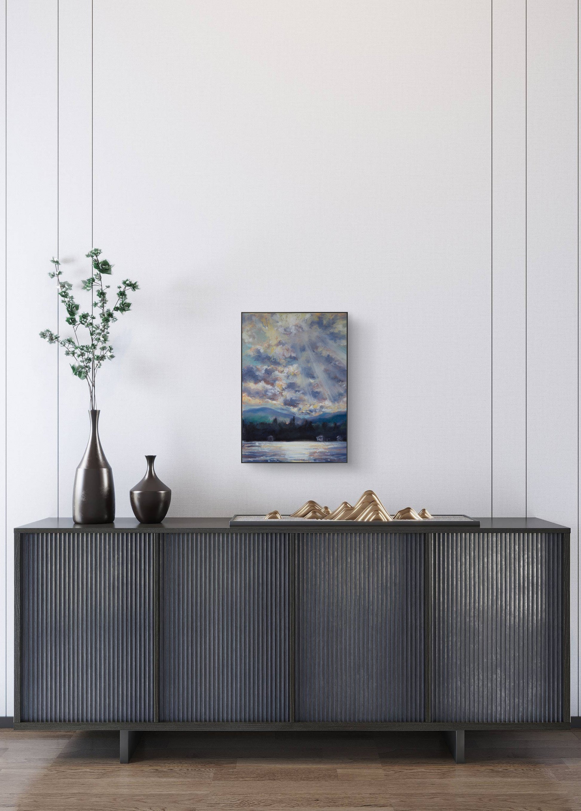 For this piece, I sat down with a pair of sunglasses and attempted to capture the blinding afternoon sun shining through the clouds onto the lake.