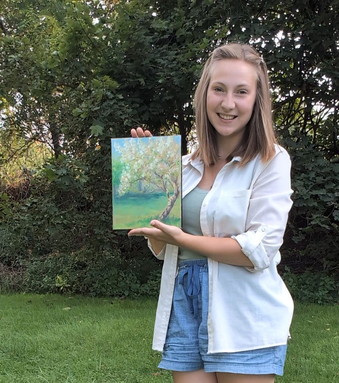 Spring is honestly my favorite time of year. The flowering trees bring the land to life with color. This is a plein air piece I did during a family picnic at Mendon Ponds, NY on one of