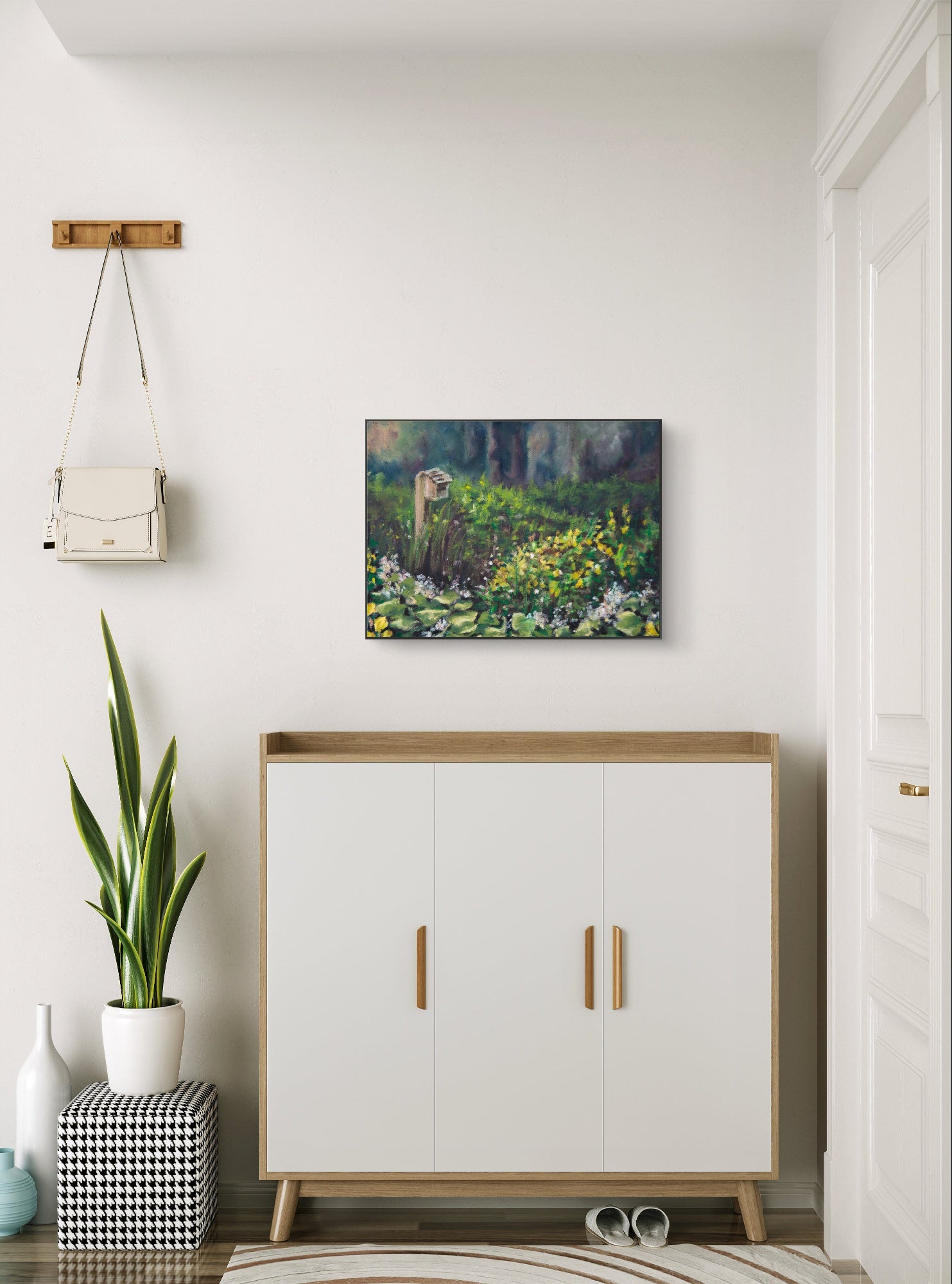 This artwork is my original creation made with oil pastel on canvas, sealed with a special sealant that prevents smudging, ensuring safely handling. This piece is equipped with wire ready for hanging. It can be framed or hung as is.